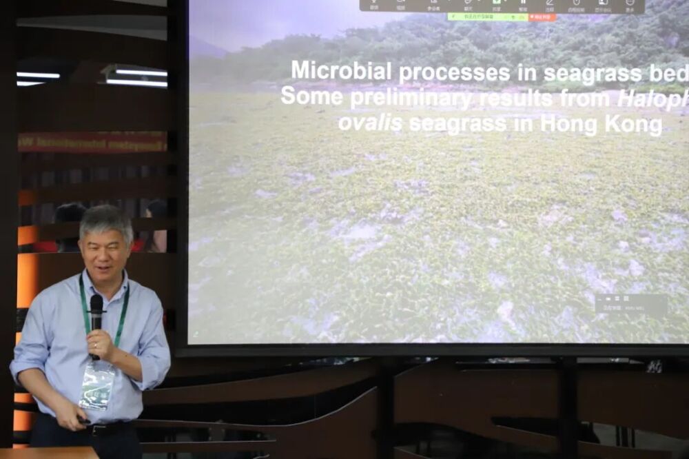 刘红斌教授作邀请报告,介绍了香港卵叶喜盐草海草床的微生物过程,指出海草床中的微生物群落是通过多种机制(如氮固定和硫氧化)支持海草的生长和碳储存。