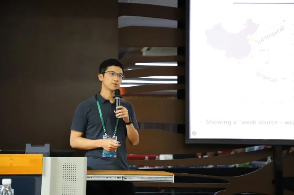 厦门大学沈渊教授介绍了海草生态系统水体碳足迹的示踪研究,展示了不同季节和区域的二氧化碳通量变化,探讨了海气二氧化碳交换的调控机制,指出海草在水体溶解有机碳的生产和释放方面起到重要作用。