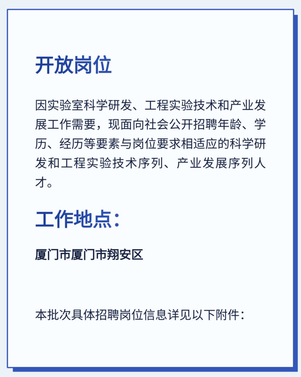 《鹭江创新实验室产业发展序列招聘岗位需求表》链接: