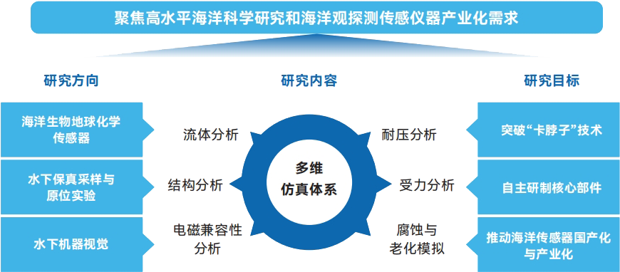 中心聚焦国家深远海战略与海洋观测重大需求,致力于开展前瞻性、引领性的海洋传感技术与高端装备研发,聚焦船载走航式分析系统、原位传感器、实验室及公民科学仪器等方向,开展关键技术攻关与创新方法研究。