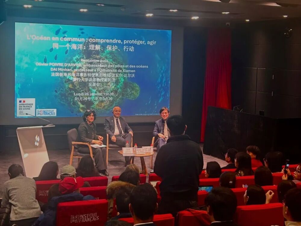 2026年1月26日,“同一个海洋:理解、保护、行动”对话活动在北京法国文化中心举行。法国总统海洋与极地事务特使奥利维耶·普瓦夫尔-达沃尔与戴民汉院士高峰对话,在全面回顾第三届联合国海洋大会成果基础上聚焦《BBNJ协定》,分别从外交与科学的视角,深入研讨如何共同守护我们的同一片海洋。