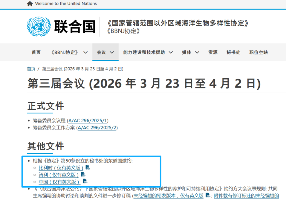 [1] 马新民,《BBNJ协定是国际海洋法发展里程碑》,中评网,2025年12月3日.