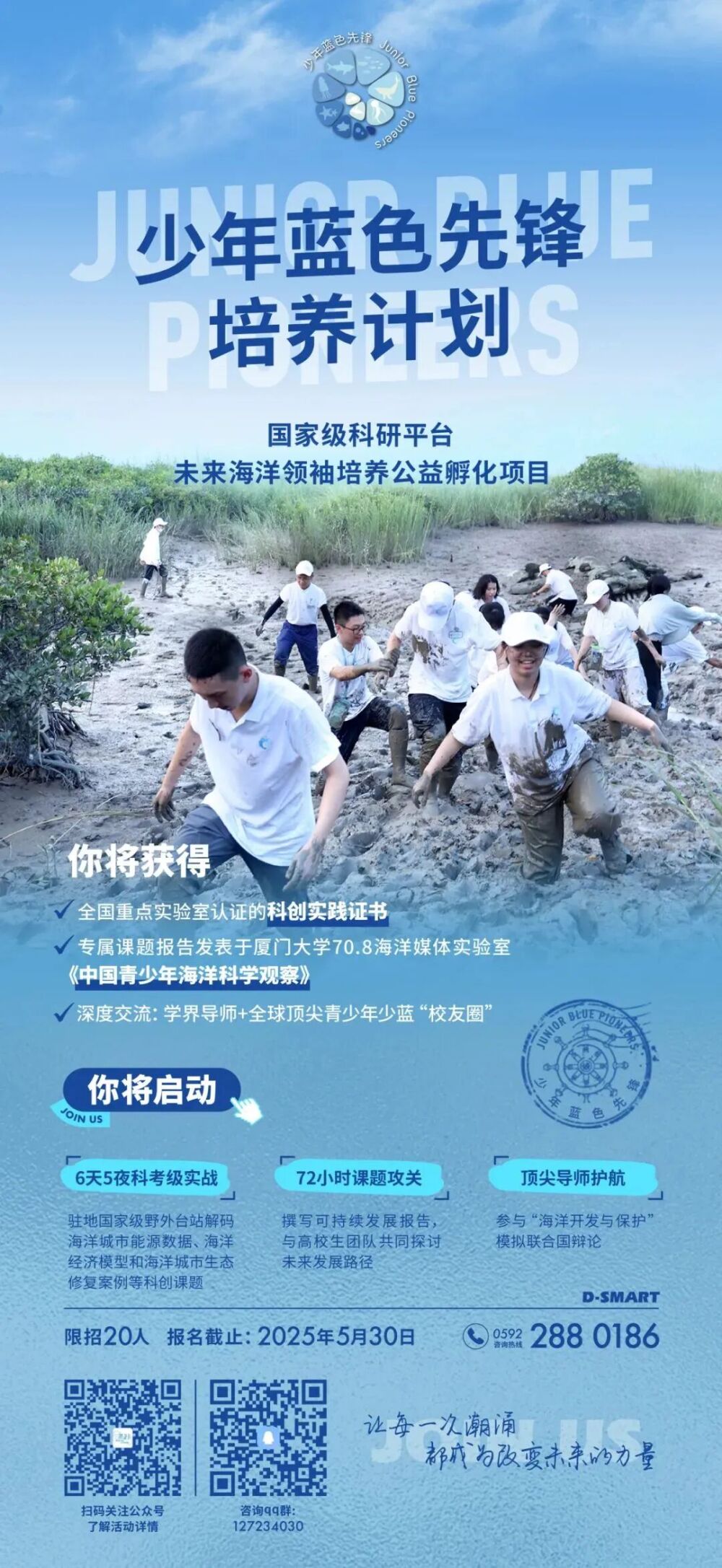 2025年少蓝项目将整合科研、教育与社会力量,聚焦海洋生态保护与海岛可持续发展,致力于培养跨学科、多元化的青少年未来领袖。