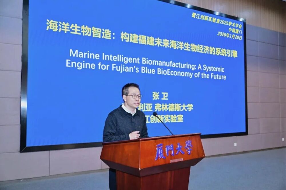 张卫院士以《海洋生物智造:构建福建未来海洋经济的系统引擎》为题,指出海洋生物智造是全球蓝色经济发展重要趋势,也与我国未来产业布局方向高度契合。他认为,福建要实现从海洋资源大省向系统智造强省的跨越,必须走创新引领之路。他进一步提出了以科技创新驱动海洋产业系统性升级的“鹭江方案”——构建“短期赋能、中期突破、长期引领”的三层发展引擎模型。