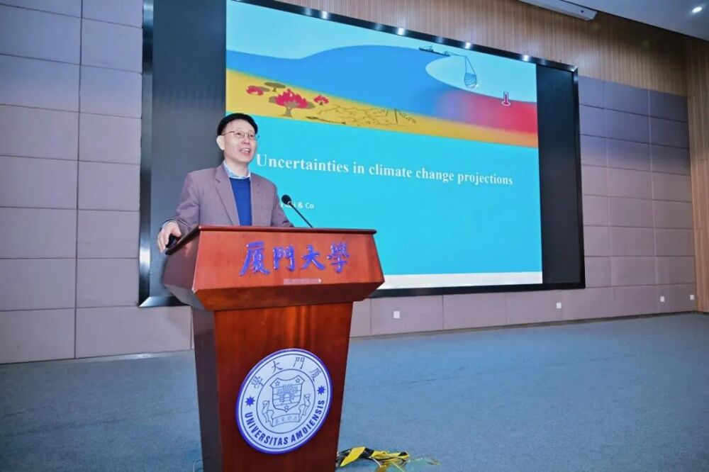 蔡文炬院士以《气候变化预估的不确定性》为题,系统阐述了当前气候预估难以做到精确定量的原因,并从排放情景、气候系统内在变异以及气候模式自身局限三个层面,深入分析了不确定性的来源、表现形式及其连锁影响。他结合海洋变化、ENSO、极端天气及经济影响等多个研究案例辅以说明,并以“我们只有一个世界”呼吁大家,在科学认知“不确定性”的基础上,积极应对气候变化带来的挑战。