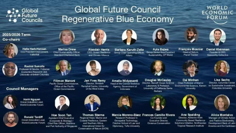 蓝色经济对全球经济至关重要,通过海运、沿海旅游、水产养殖和渔业等关键部门支撑着数十亿人的生计。因此,“再生蓝色经济”专题理事会汇聚了全球可持续发展、海洋保护、金融投资等领域的领军人物,旨在推动蓝色经济的创新与可持续发展。该理事会的主要议题包括蓝色金融机制、深海生物经济、海洋保护与恢复、可持续渔业与水产养殖、科技如何推动蓝色经济发展等。世界经济论坛期望通过该平台促进跨界合作,推动全球海洋经济的长期可持续发展,并加速推动金融机构、慈善基金会、政策制定者和企业的协同投资。