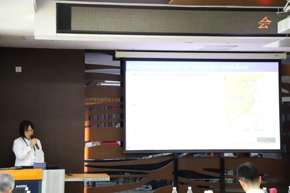 厦门大学陈鹭真教授介绍了滨海蓝碳及其功能、项目的蓝碳监测与计量方法学,并讲解了海草床方法学的应用。报告强调了通过蓝碳市场机制和蓝碳交易实践促进对蓝碳生态系统价值的正确认识,应持续推动海草床生态修复和保护,实现湿地固碳增汇与生物多样性保护协同提升。