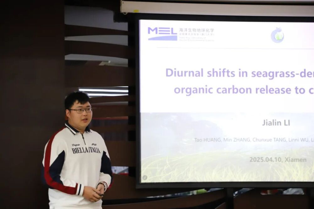 广西海洋科学院(广西红树林研究中心)邱广龙副院长,厦门大学程鹏教授、余小龙副教授、陈蔚芳高级工程师,厦门大学博士研究生孙家鑫及张敏、硕士研究生李佳霖,中国科学院海洋研究所博士研究生刘明杰作报告。报告围绕“中国南方海草床的修复进展和实例展示”“中国海草床沉积物有机碳储量”“数值模型模拟”“遥感技术”“海草床中的有机碳和无机碳循环”“单光子荧光光谱激光雷达”“中国北方海草床的修复进展和实例展示”等方面进行研讨。