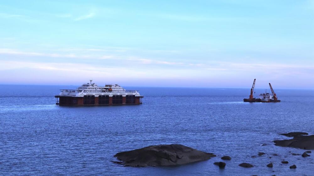 日前,泉州市首个深海养殖旅游平台“闽投惠安1号”成功拖航至惠安县风车岛海域。平台集绿色养殖、智慧旅游于一体,投用后预计年养殖高端水产品1500吨,接待游客超5万人次。记者 庄钊滢 摄