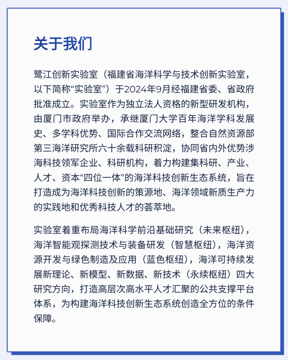 《鹭江创新实验室科学研发和工程实验技术招聘岗位需求表》链接: