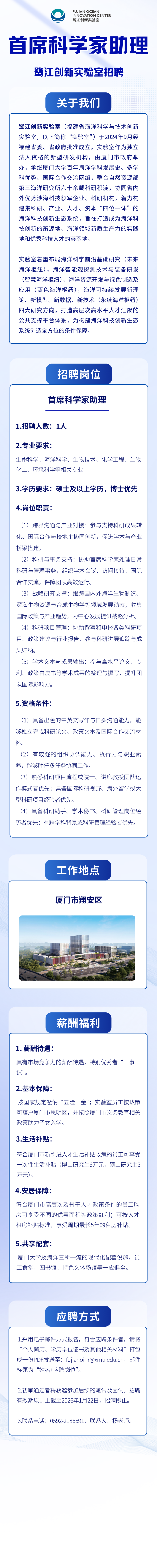 鹭江创新实验室|首席科学家助理招聘公告