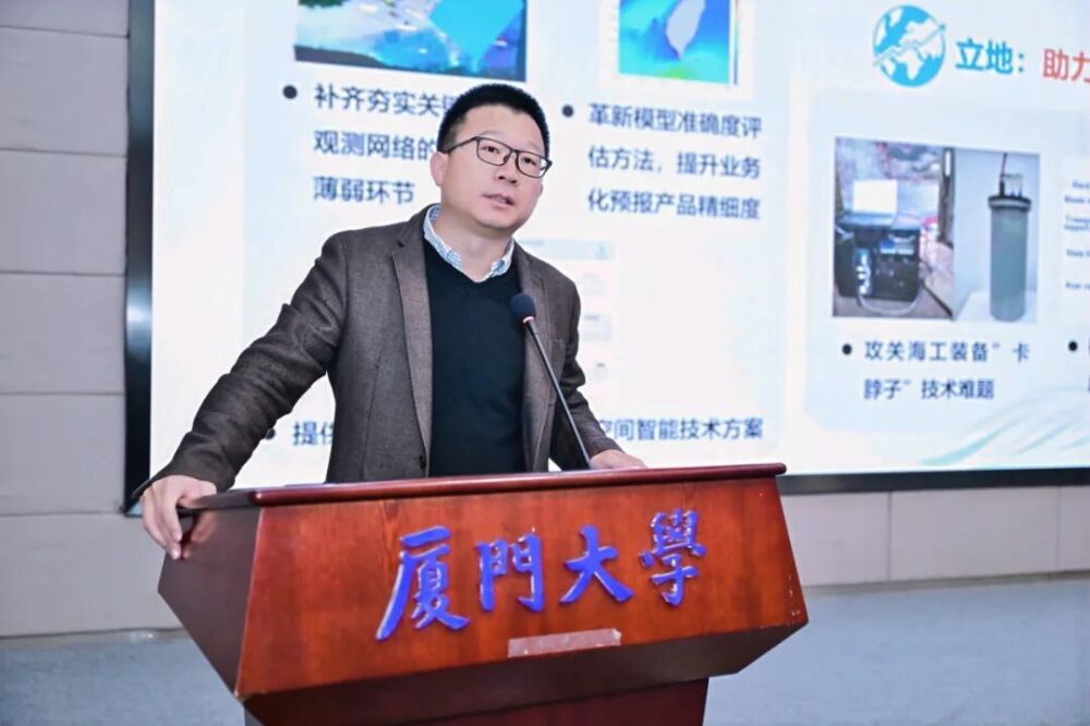 林宏阳教授介绍海洋立体观测与数值模拟预报中心正着力打造智能化观测预报体系,为防灾减灾提供科学支撑;祝青园教授汇报特种海洋机器人研发中心已突破水下机械臂、视觉感知等核心技术,完成新一代水下机器人原型设计;李忠平教授介绍海洋与海岸带遥感应用中心联合企业共建,积极推进“海丝星座”建设,助力近海环境精准监测;马剑教授汇报海洋传感技术与装备研发中心已实现多款传感器国产化,产品已供应至国家海洋监测中心;袁飞教授介绍水声通信与海洋信息技术教育部重点实验室构建了空海跨介质通信系统,为立体观测网络提供通信保障。