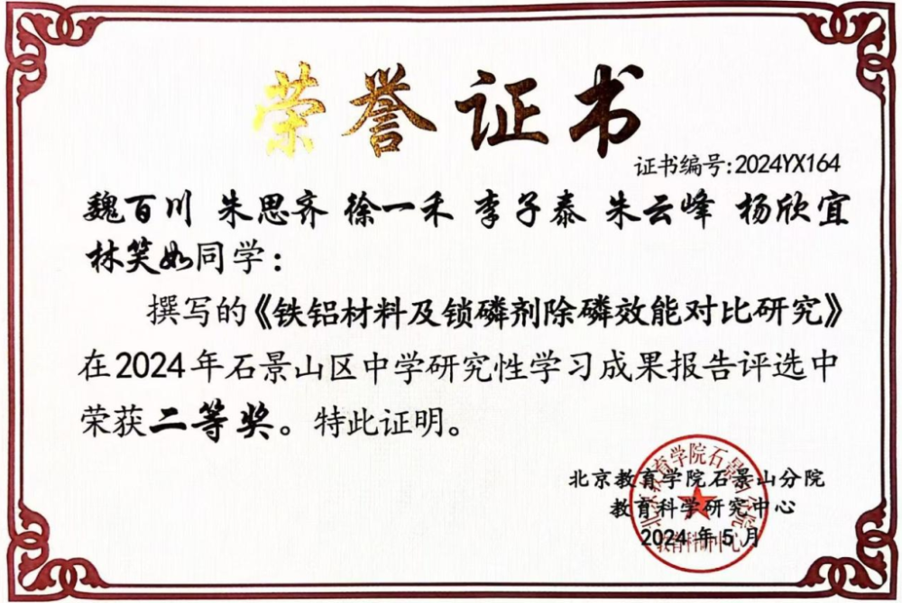 “少蓝时我参与了'漳江口红树林生态修复调查'课题,我们一边做实验,一边走访保护区的渔户,综合两者的结论来思考红树林的生态修复情况。之后,我参加了中国科学院南京地理与湖泊研究所的研学活动,运用在少蓝学到的科学逻辑,完成了《铁铝材料及锁磷剂除磷效能对比研究》研究性学习报告,该报告获得了区级二等奖。我想,是少蓝的经历教会了我如何用科学思维解决现实问题。”